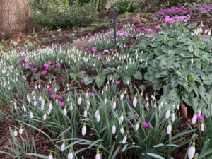 As if by magic, our quiet banks are painted over with the silvery green and white of snowdrops, the filagree leaves and delicate petals of Anemone nemorosa, clumps and clusters of cyclamen. Now is the time to wander the Winter Garden, delighting over our good fortune and the foresight of all the gardeners before us.